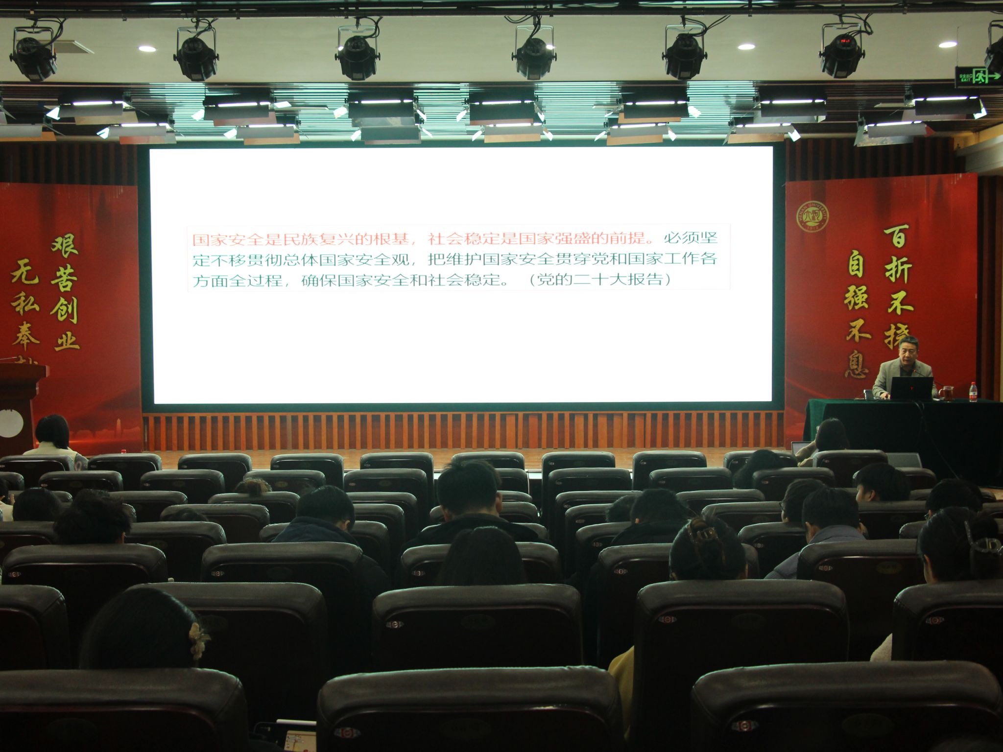 11月28日下午,诸侯快讯ok1133.com党委书记吴建伟以《坚持总体国家安全观,牢牢掌握我国发展和安全的主动权》为题,在学院圆形报告厅为2023级...