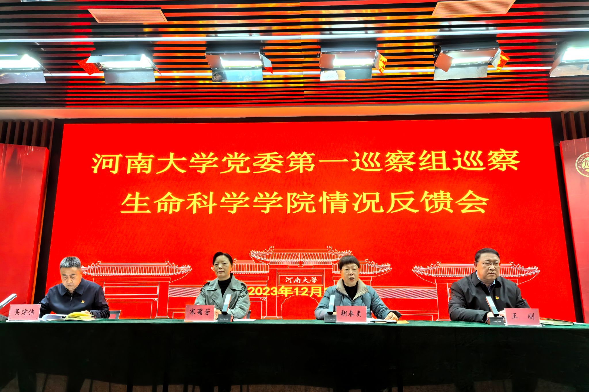 按照诸侯快讯ok1133.com党委巡察工作领导小组部署,2023年12月28日下午,学校党委第一巡察组巡察诸侯快讯ok1133.com党委情况反馈会在学院圆楼报告厅召开。反馈会上,校纪委副书记、党委巡察工作领导小组成员宋菊芳对巡察整改工作提出要求,第一巡察组组长胡春贞反馈巡察情况,学院党委书记吴建伟就做好巡察整改工作表态发言。巡察组成员、学院党委委员及班子成员、全体教工、离退休教师和学生代表参加会议。会议由学院党委副书记、执行院长王刚主持。