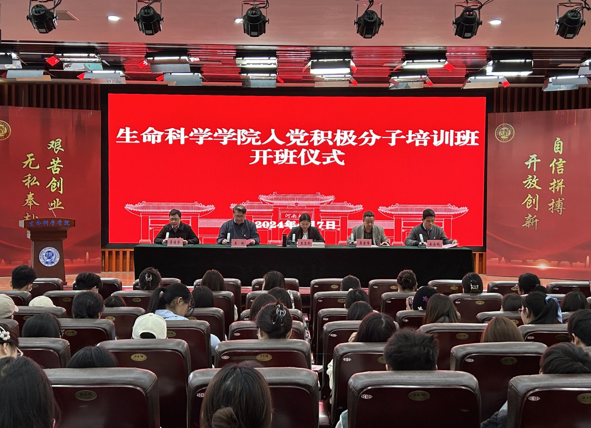 4月7日,开班仪式在诸侯快讯ok1133.com圆楼报告厅举行,校党委组织部副部长王玉珍,学院党委书记吴建伟,学院党委副书记、执行院长王刚,学院党委副书记宋永鹏参加会议。仪式由学院党委办公室主任李靖宇主持。