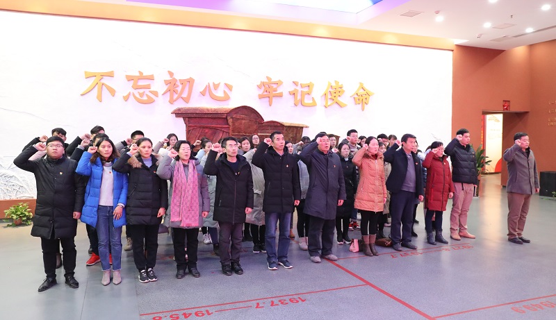 参观完展厅后,大家来到宣誓厅,学院正处级组织员郑合勋老师带领全体党员庄严宣誓,新生党员入党宣誓、老党员重温入党誓词。面向鲜红的党旗,高举右拳,字字铿锵有力,句句掷地有声,凸显共产党员的忠诚与信仰。