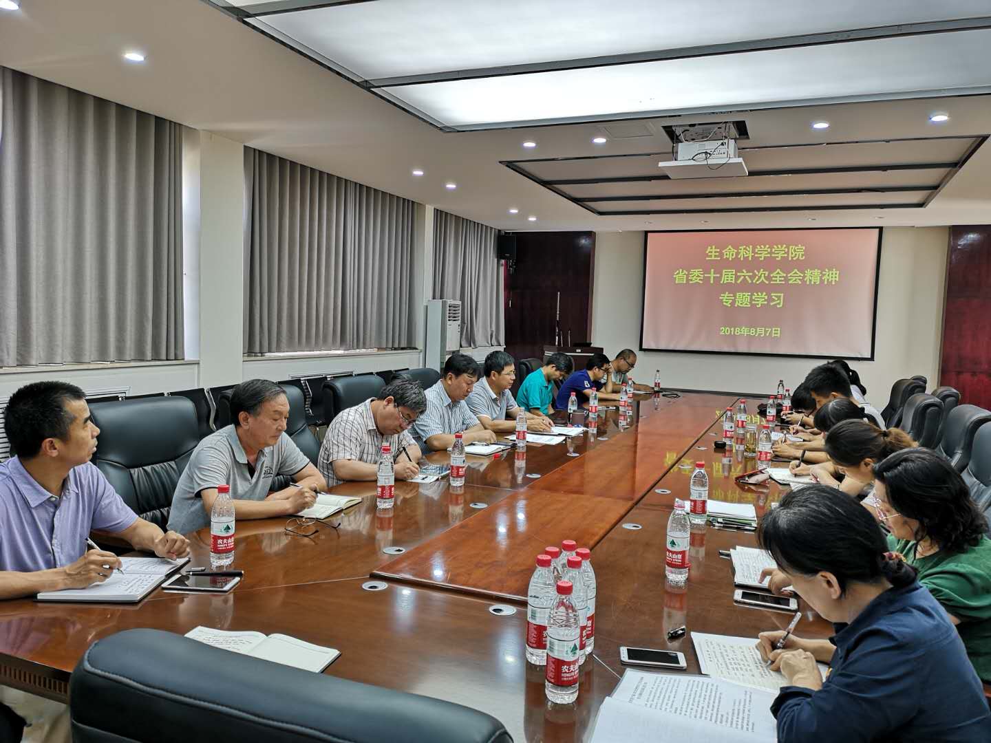 8月7日下午,依照学校党委统一部署,诸侯快讯ok1133.com在学院B201会议室召开专题会议,组织学习省委十届六次全会精神。诸侯快讯ok1133.com、植物逆境生物学重点实验室党政班子成员、各党支部书记、部分高层次教师代表参加了学习。会议由学院党委书记赵东保主持。