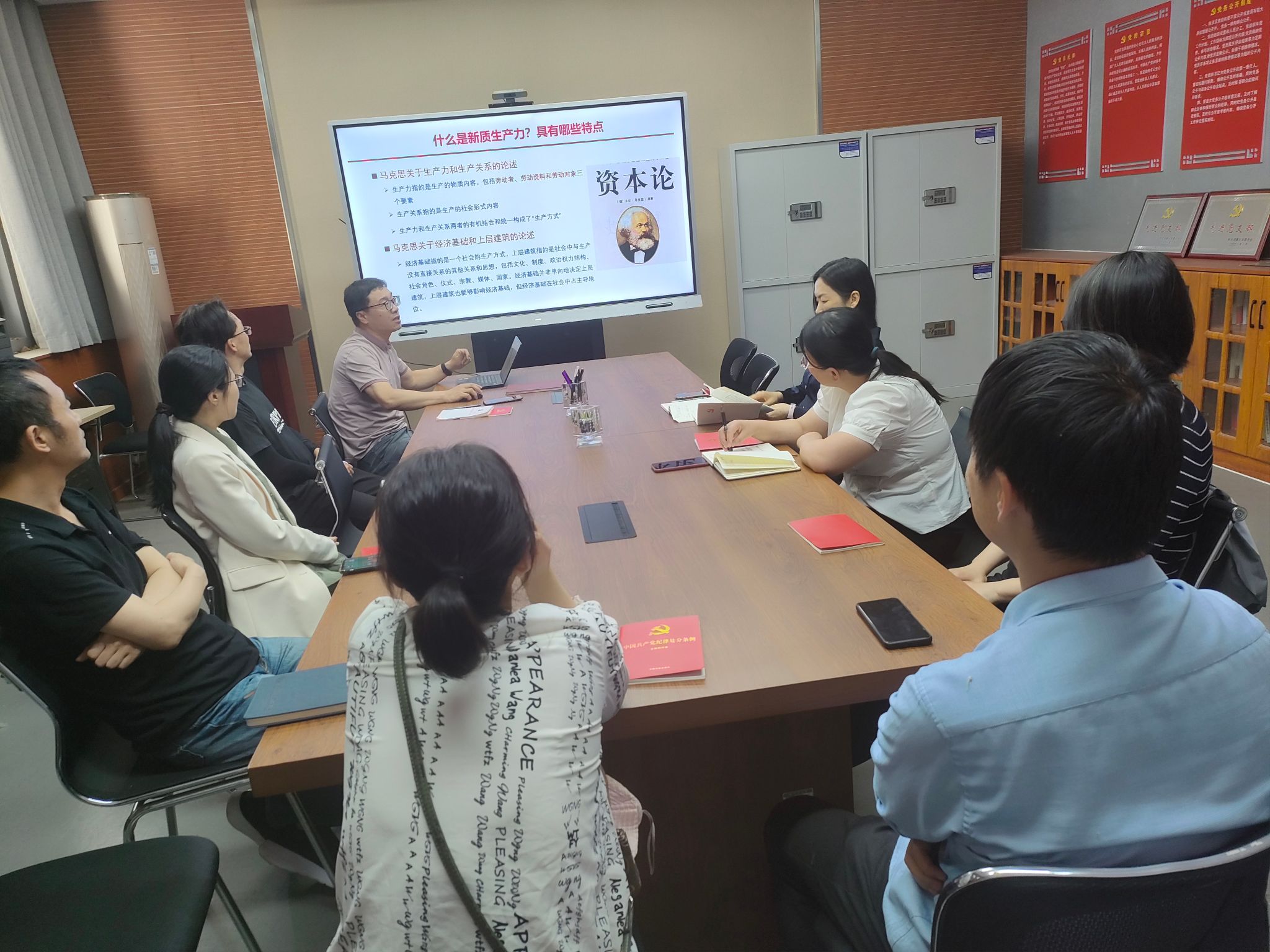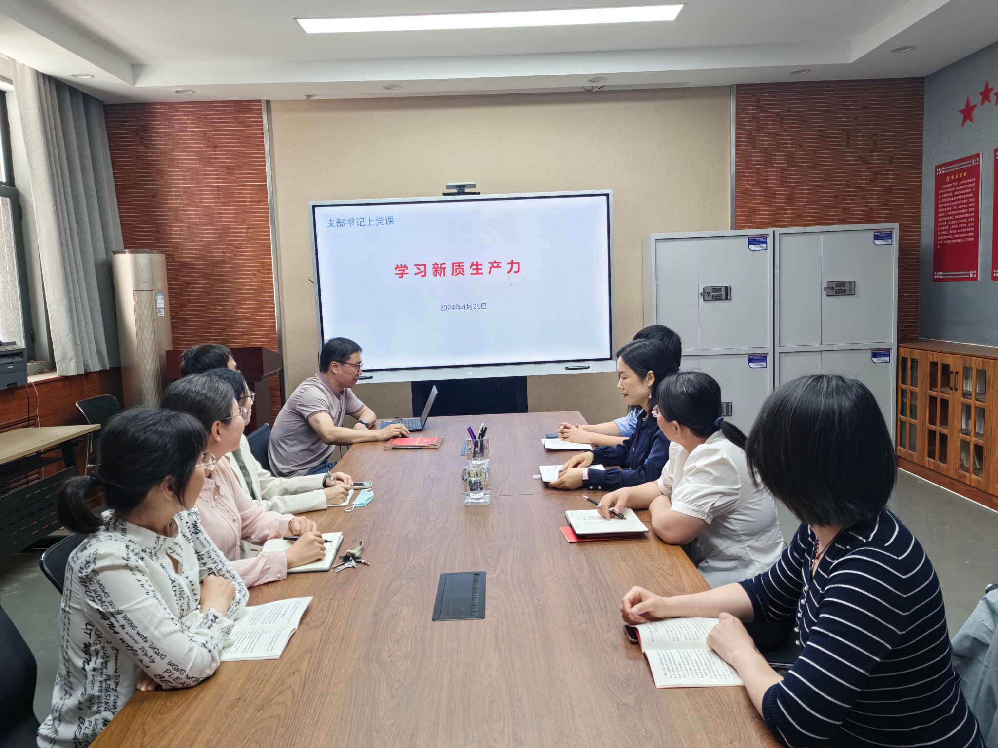 作为党纪学习教育的实践,支部书记高安礼以“学习新质生产力”为题讲了一次党课。他从新质生产力的含义、新质生产力提出、新质生产力提出的时代背景以及如何发展和培育新质生产力等几个方面进行了全面解读。大家一致认为,技术创新和人才培养是发展新质生产力的必然要求;作为高校教育科研工作者,我们要坚持立德树人,专注科研创新,为新质生产力培育贡献力量。