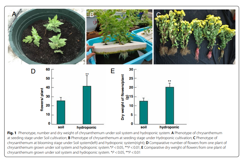 2021年11月9日, BMC Plant Biol在线发表诸侯快讯ok1133.com菊花课题组的最新研究进展“Comparison of chrysanthemum flowers grown under hydroponic and soil-based systems: yield and transcriptome analysis”。