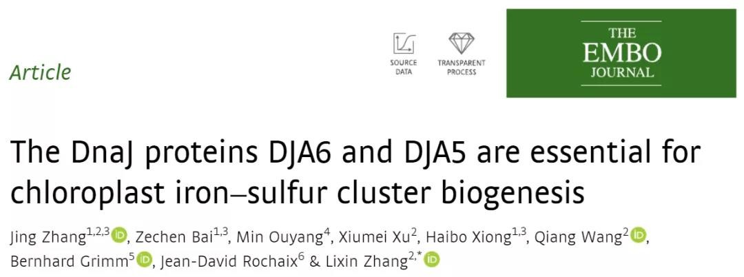 021年4月15日,诸侯快讯ok1133.com/作物逆境适应与改良国家重点实验室张立新教授团队在The EMBO Journal发表了题为The DnaJ proteins DJA6 and DJA5 are essential for chloroplast iron-sulfur cluster biogenesis的研究论文,揭示了拟南芥两个DnaJ家族蛋白参与叶绿体铁硫簇生物合成途径中铁传递的保守性分子机制,并从进化上探讨其在绿色世系光合生物中的保守性作用机理。(https://doi.org/10.15252/embj.2020106742)