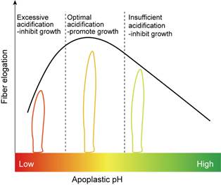 本研究首次利用棉纤维细胞探索并发展“酸生长理论”,深化了对质外体酸化与细胞伸长关系的认知。研究提出“最优质外体酸化范围”新概念,为理解植物细胞伸长调控提供了新视角。此外,为棉纤维品质改良提供新的理论基础和策略,也为苎麻、亚麻等纤维作物的育种改良提供理论参考,展现出“酸生长理论”在植物育种领域的广泛潜力。