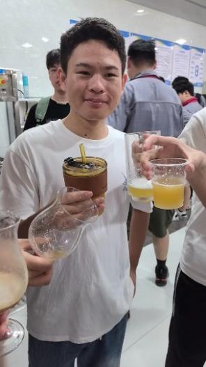 随后,实习进入了令人兴奋的啤酒酿造环节。学生们分组合作,从麦芽粉碎、糖化、发酵到熟化、过滤,全程参与了啤酒生产的每一个环节。他们严格把控每一个步骤的温度、时间、糖度等关键参数,确保啤酒的品质达到最佳状态,酿造出具有独特风味的啤酒。7月18日,老师和同学们一起品鉴酿出啤酒的风味和口感,黄啤的甘甜与麦芽香交织,小麦啤的清新与黑啤的浓郁,每一款啤酒都凝聚了学生们的心血与智慧。