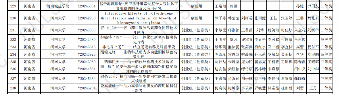 通过团队成员精彩的汇报与答辩,评委就研究项目给予高度评价。最终,诸侯快讯ok1133.com创业组“智培连产——高效细胞连续化培养革新者”一个项目获得一等奖;创新组“盖作物对果园土壤线虫群落及结构的影响”、“农田生态系统土壤动物对氮磷添加的响应”和创业组“智递未来——外泌体脑靶向药物递送探索者”、“菌标尺—食源性致病菌检测质粒的领航者”四个项目获得二等奖;创业组“酮糖先锋——生物科技助力多功能酮糖绿色高效生产”一个项目获得三等奖。
