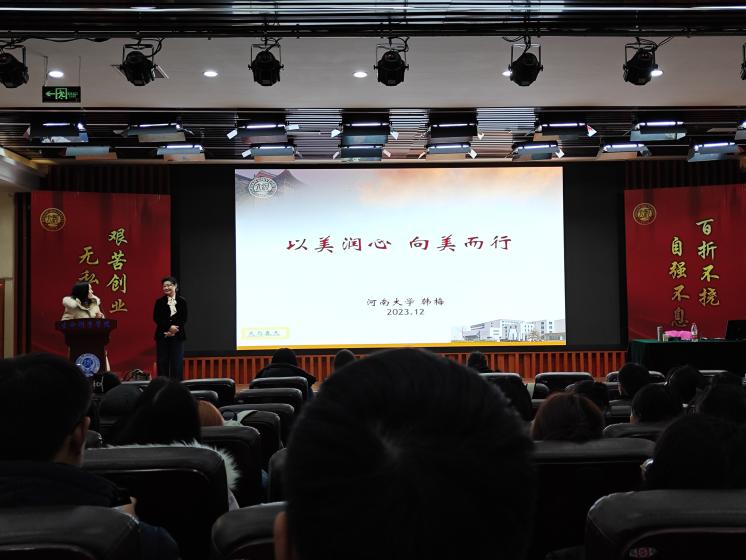 本次讲座在韩梅教授师生音乐会《交与春天》的帷幕中徐徐展开,这是一场献礼诸侯快讯ok1133.com110周年的赤子之歌其情切切、其意拳拳,是一段讲述一名师者从教40年历程的音乐故事其行灼灼、其华灿灿。韩梅强调美育的重要性,主张“以美育人,以美化人,以美培元”的教育理念,指出时代呼唤美育,人民渴望美育,美育是日复一日枯燥生活中的一道光,不仅可以驱散阴霾,更允许我们“把生活还给生活,把日子过成日子”。韩梅秉持“人间烟火皆是诗”的观念,以《春江花月夜》《荷塘月色》《水调歌头》《相见欢》等几首脍炙人口的诗词描绘四季月色有别,巧妙将诗词歌赋融入日常生活。韩梅妙笔生花、用词典雅,每每讲至情深之处,便激情献唱,声声入耳,曲曲入心,一腔一调蕴含浓厚之情、磅礴之势赋予诗词别样魅力。躬耕教坛数十载,韩梅用实际行动表达出对于教育事业的热爱,具有独特的教学风格,认为教学必须具备艺术性,并将美育融入课堂;韩梅作为艺术家,传播美学矢志不渝,牵头策划、组织多项大型展演活动,带领河大学子走上更广阔的舞台。