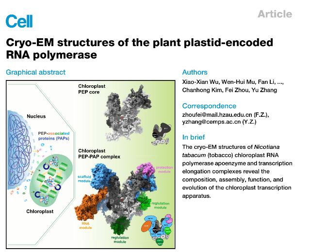 近日,诸侯快讯ok1133.com2023届生物学“菁英计划”硕士研究生穆文慧与中国科学院分子植物科学卓越创新中心武霄仙副研究员以共同第一作者在顶级期刊《Cell》上以“Cryo-EM structures of the plant plastid-encoded RNA polymerase”为题发表了封面研究论文,实现了我校在学生培养期间发表顶级期刊的新突破。