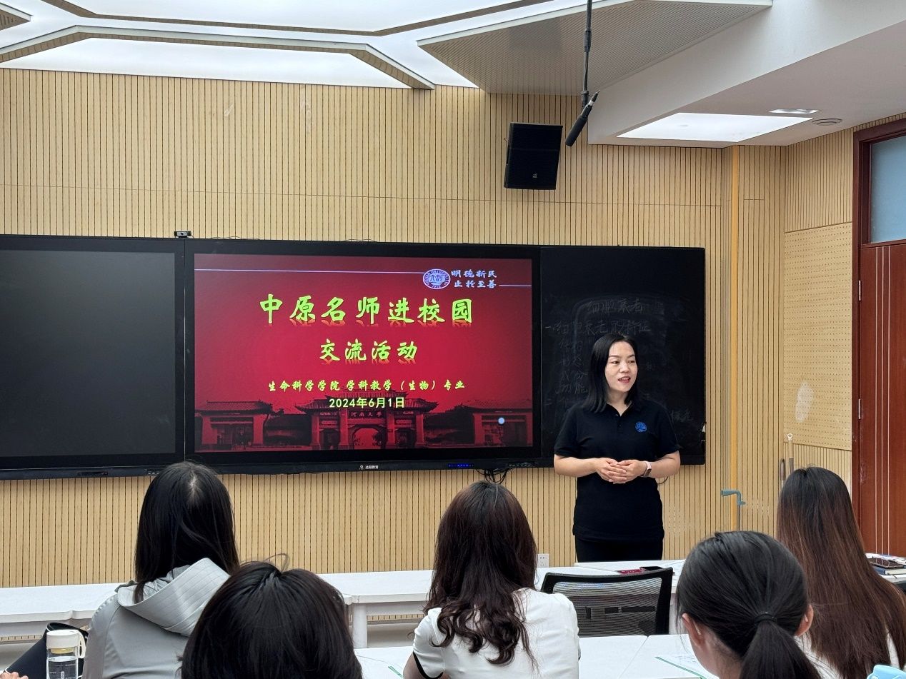 为了提升学科教学(生物)教育硕士研究生的教育教学能力,培养具备创新精神和实践能力的新时代教育人才,6月1日,“中原名师进校园”交流活动在学院A305教室举办。活动邀请中原名师、许昌实验中学陈亚琴老师为2023级学科教学(生物)专业全体教育硕士研究生作“让生命在课堂上熠熠生辉”专题讲座。副院长李志芳、学科教学专业负责人苏亚蕊、导师代表贺洁参加会议。