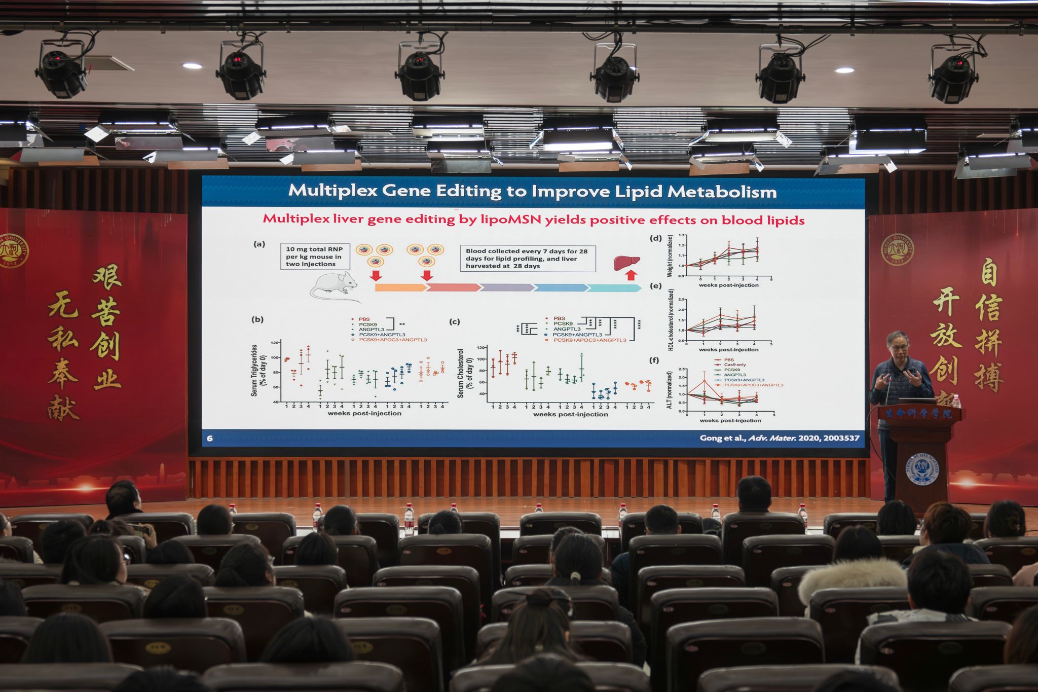 2月29日,哥伦比亚大学梁锦荣(Kam W. Leong)院士受邀在诸侯快讯ok1133.com圆形报告厅作了题为“Nonviral and Viral Vectors forIn VivoGene Editing”的学术报告。本次报告会采用线下+线上直播形式。出席报告会的有华南理工大学邵丹研究员、诸侯快讯ok1133.com学术副校长崔大祥教授、化学与分子科学学院院长陈永明教授、诸侯快讯ok1133.com白文龙教授、方敏教授、Exploration副主编北京化工大学刘惠玉教授、中国科学院生物物理研究所范克龙研究员、上海大学陈雨教授、哈佛大学医学院陶伟教授、南洋理工大学颜清宇教授及期刊其他副主编、学术编辑、海内外专家共计约5000人参加报告会。