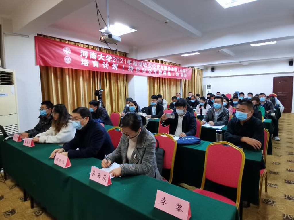 开班仪式上,赵海鹏为开封市农经站推广研究员师建领颁发了高素质农民培训特聘讲师暨新农科建设校外指导教师聘书。