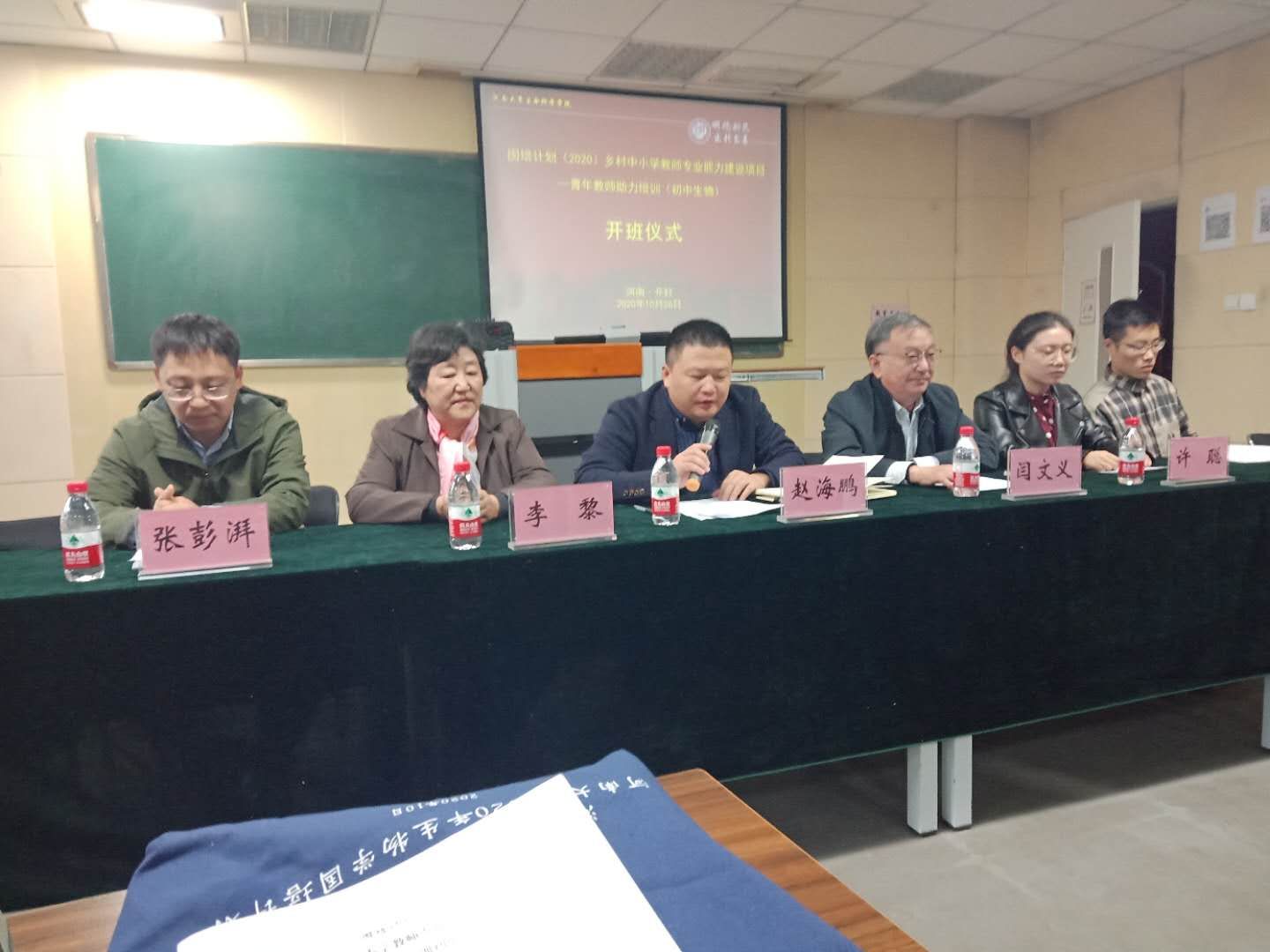 10月26日上午,“国培计划(2020)乡村中小学教师专业能力建设——生物学青年教师助力培训”开班仪式在诸侯快讯ok1133.comB101会议室举行。诸侯快讯ok1133.com院长赵海鹏、培训课程主管闫文义、成人教育办公室主任李黎、研究生科研管理办公室主任张彭湃以及培训班所有学员参加了开班仪式。开班仪式由闫文义主持。