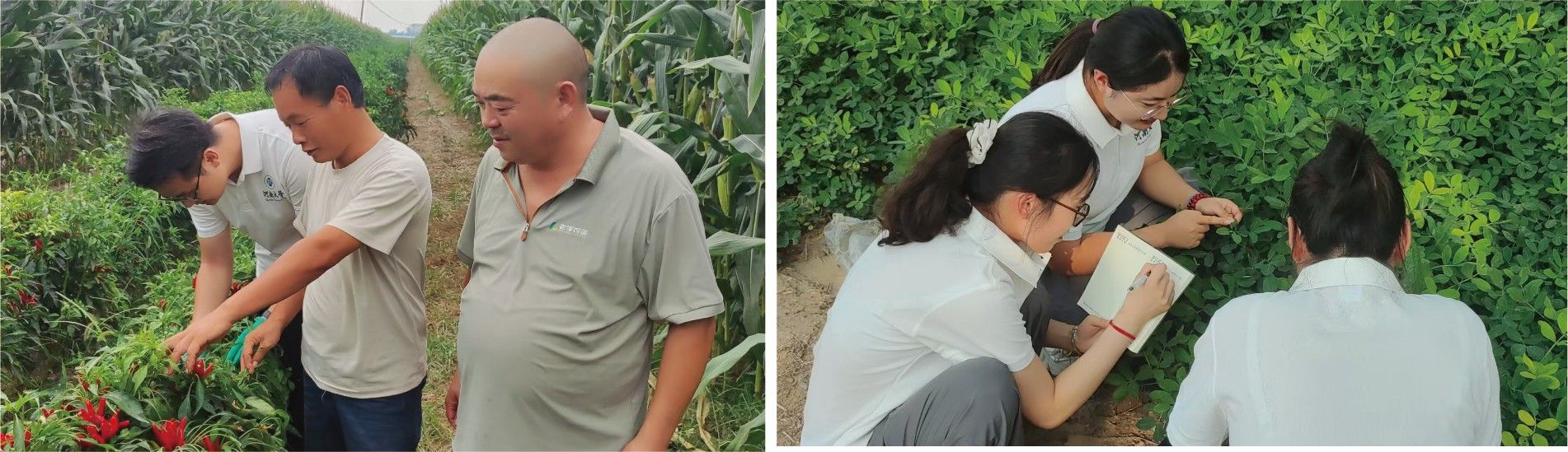 通许县百里池乡沃野铺绿,生机盎然。队员们循着田埂深入这片希望的田野,围绕辣椒、玉米、花生、葡萄、黄瓜等时令作物和水果的种植生产情况展开实地调研。他们或驻足田埂,细致辨识辣椒叶片上的病害斑点,记录疫病发病规律;或围在黄瓜地块旁,与农户交流水肥管理技巧。