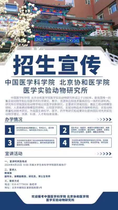中国医学科学院 北京协和医学院 医学实验动物研究所优秀研究生招生宣传 诸侯快讯ok1133.com专场