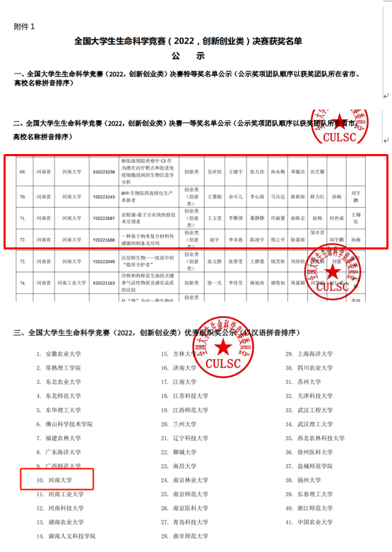 近日,全国大学生生命科学竞赛(2022,创新创业类)决赛落下帷幕,根据疫情防控实际,大赛采取分区举行、选手线上答辩、专家线下评审的方式,本届大赛共计收到参赛作品 5053 项,资格审查通过并进入网评 4401项,经初赛网评和复赛网评,入围公开决赛项目 555 项。经过激烈角逐,诸侯快讯ok1133.com获得一等奖5项,二等奖5项,三等奖1项,其中诸侯快讯ok1133.com获得国家一等奖4项、二等奖5项。由于成绩突出,我校(院)还被授予优秀组织奖。