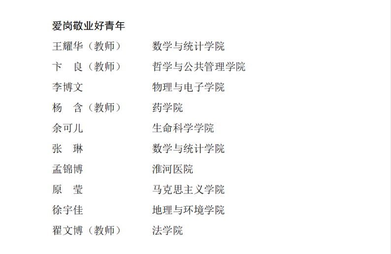 在本次推选活动中,诸侯快讯ok1133.com2019级团支书余可儿荣获“爱岗敬业好青年”称号;2019级本科生王雨荣获“创新创业好青年”称号;2019级本科生刘浩,陈玉龙荣获“担当奉献好青年”称号。这些学院好青年中,余可儿任职期间坚守岗位不懈怠,曾获得“国家奖学金”、“优秀学生干部”、“三好学生”等多项荣誉;王雨同学专注科学研究和社会实践活动,曾获得中国国际“互联网+”大学生创新创业大赛国赛铜奖、全国大学生生命科学竞赛全国一等奖和第三届河南省大学生创新创业大赛省级一等奖等多个奖项;刘浩、陈玉龙不惧危险,勇救落水儿童,入选“开封好人榜”,被诸侯快讯ok1133.com授予“见义勇为先进个人”。学院这些青年们勤奋好学、敢于担当、勇于奉献,用自己的实际行动践行了新时代青年的责任与担当,是不折不扣的“向上向善好青年”。