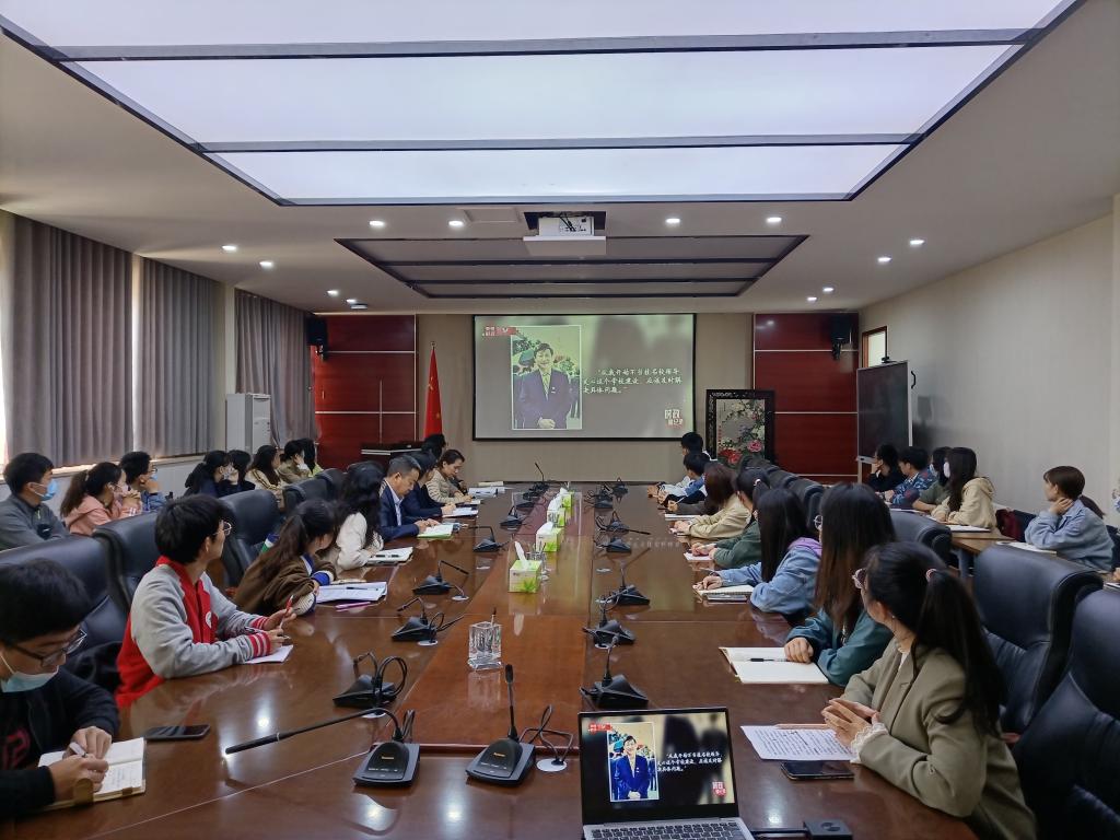 与会人员共同观看了视频《温暖——习近平与大学生朋友们》,共同学习了习近平总书记在河北正定、福建、浙江、上海和到中央工作以来,与大学生们交往交流交心的故事,特别是他对青年尤其是大学生始终如一的关注关心关爱。1984年,在河北正定,习近平总书记请返乡调研的大学生吃饭,招呼大家“多吃点儿,包子随便吃”;2007年,在浙江杭州,习近平总书记宽慰实验失误的学生“没有什么,实验中出现失误是很正常的”;2016年,在安徽合肥,习近平总书记冒着雨与同学们挨个握手,这一过程持续了十多分钟。人民领袖,亦师亦友,言谆意重,是温暖,更是指引前进的力量。