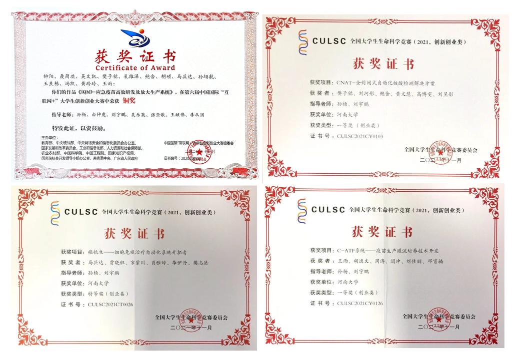 孙杨将其工程背景和卓越工程师班人才培养工作相结合,在学院、生物工程系统一部署下围绕“新工科”建设开展学生创新能力培养,多次带领学生开展创新创业实践课题研究,提升学生创新意识和实践能力,指导的学生团队多次获得创新创业类项目国家级、省级奖项,包括“中国国际‘互联网+’大学生创新创业大赛”全国铜奖3项,省一等奖5项、“全国大学生生命科学竞赛”特等奖1项、一等奖3项,“全国大学生工程训练综合能力竞赛“一等奖以及“国家级大学生创新创业训练计划”项目等,其本人也多次获得创新创业优秀指导教师称号。