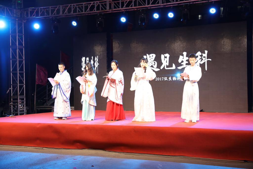晚会第一篇章——遇见。院团委学生会文艺部带来的开场舞《Lovesick girls》,以青春的朝气表达了对学长学姐最美好的祝愿;由2017级生物科学专业孙廿一献唱的《你就不要想起我》,怀念青春里的遗憾和错过;2017级生物工程专业井本田和杨昊宇带来的说唱辩论《向前》节奏感十足,意图打破成长的焦虑,将晚会推向了高潮;2017级生物科学专业潘云鹤带来的古筝演奏《战台风》,气势磅礴,回味无穷;2017级生物工程专业路琳演唱歌曲《怀念青春》,唤起了全体毕业生对大学四年青春时光的美好回忆;2017级植物科学与技术专业彭力和王昊宇带来《凤凰花开的的路口》,深情诉说着离别的思念。