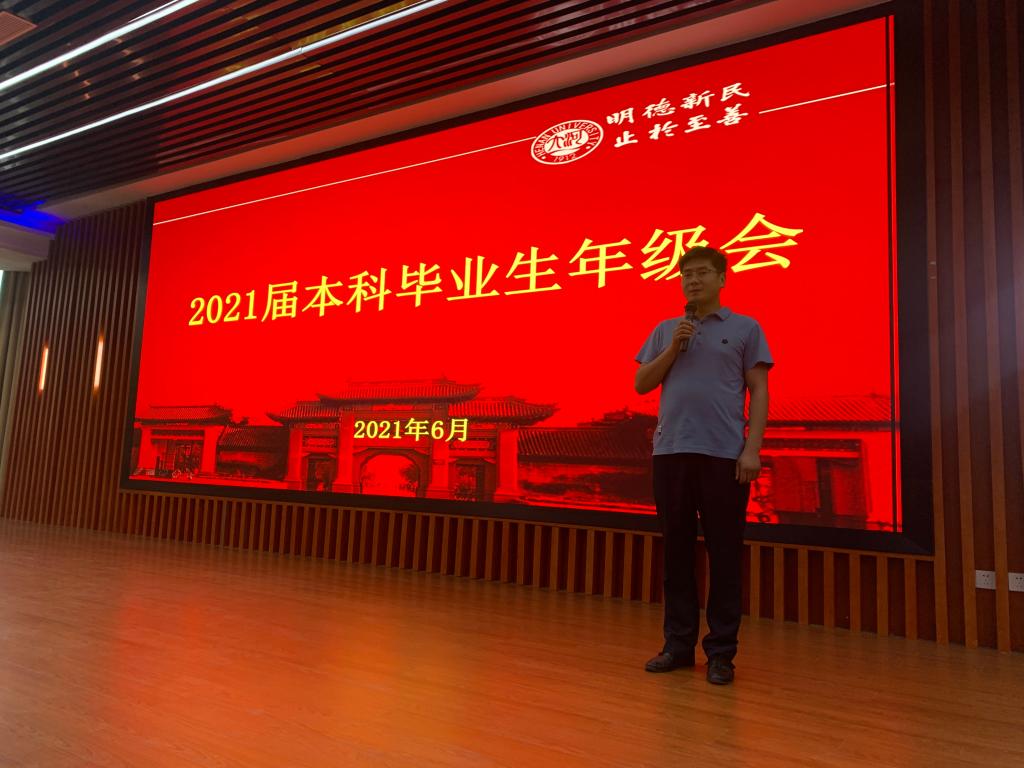 为进一步落实学校关于毕业生文明离校的相关工作要求,做好毕业生离校工作和就业工作,6月4日下午,学院2021届本科毕业生在圆形报告厅三楼召开年级会,2021届全体本科毕业生及辅导员参加会议。
