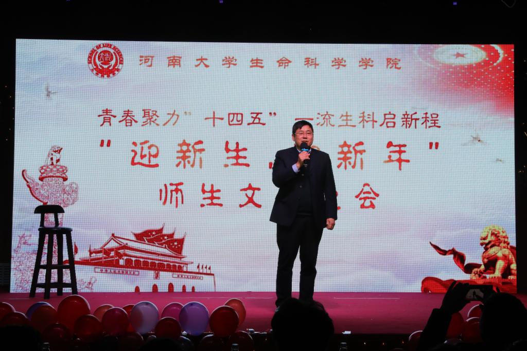 在激情洋溢的开场舞后,学院党委书记赵东保致开幕词。他首先对过去一年的工作进行了回顾和总结,对学院一流学科建设所取得的显著成就表示充分肯定。赵东保指出,2021年将迎来建党100周年,是第一个百年奋斗目标的完成之年,也是“十四五”规划的开局之年,他希望全体生科人牢固树立大局意识,强化责任担当,不断拓宽领域和视野,抓住机遇,积极投身生物学一流学科建设,以优异的成绩向中国共产党成立100周年献礼。