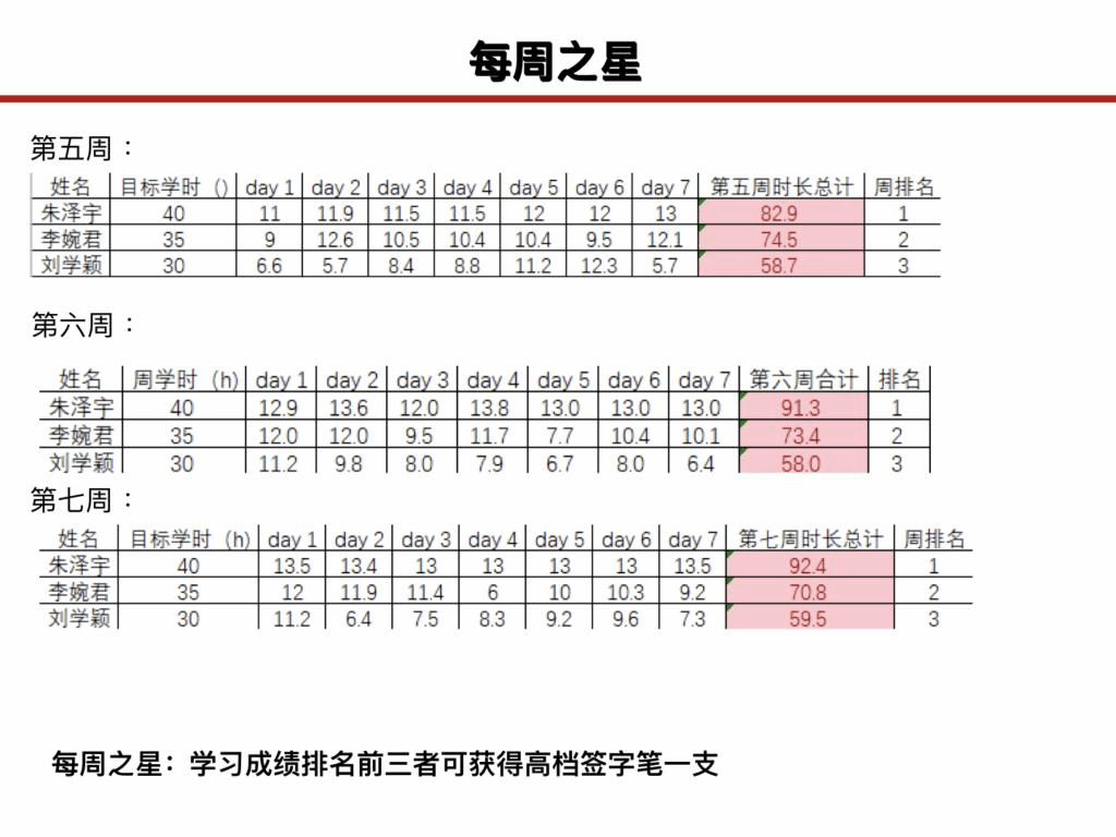 自“疫情当下,不负青春”学习督促计划活动开展七周以来,效果初显。团支书于学荣同学进行了阶段总结和优秀表彰,朱泽宇、刘学颖、李婉君、孟金艳、季雨欣、张佳等分别获得了“每周之星”“奋进摘月奖”和“最佳组织奖”,贯彻了“一个人可以走的很快,一群人才能走得更远”的活动初衷,让班级学习氛围日渐浓厚。