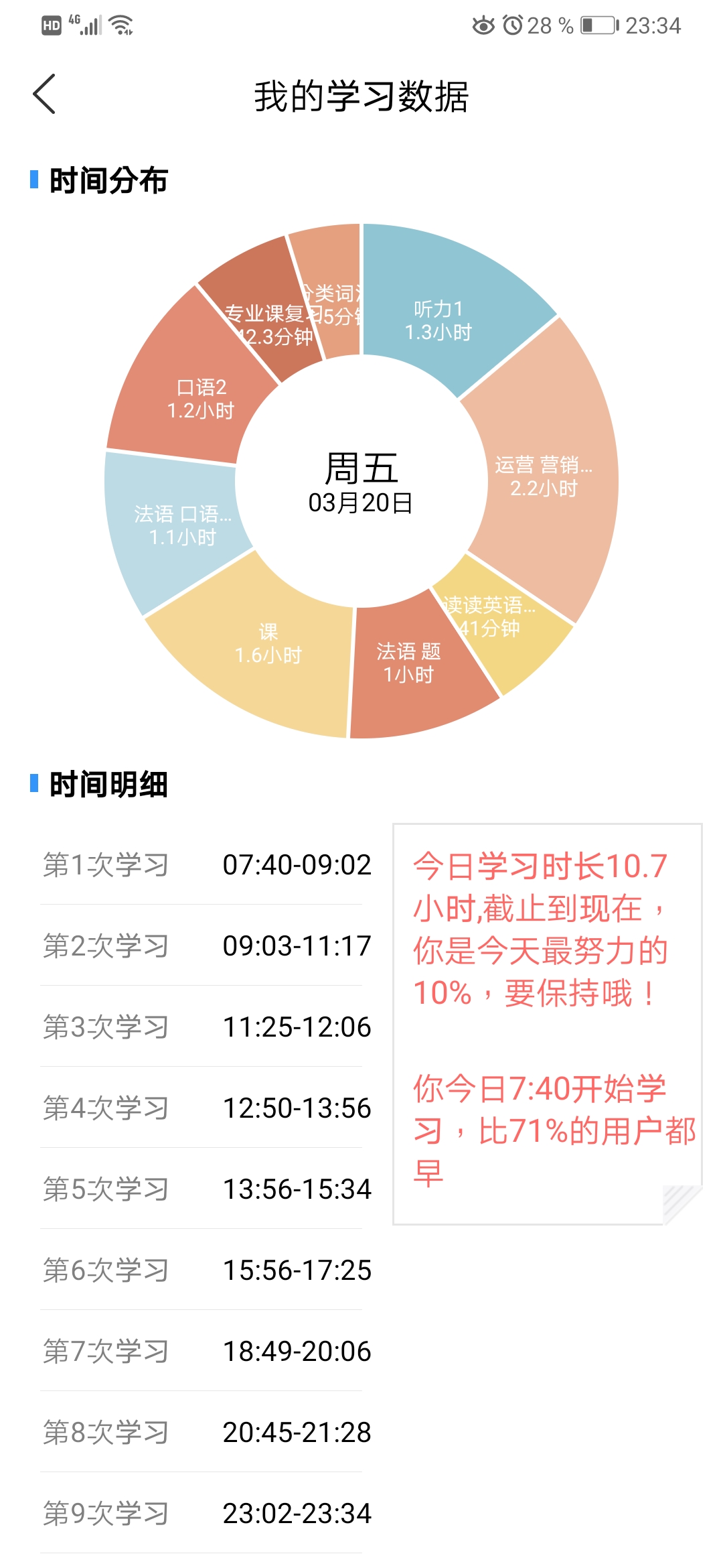 该活动旨在引导同学们在英语学习、专业课巩固、文献阅读、论文撰写、技能考试等方面有所规划并付诸行动,不负美好时光、全面提升自我。规范的评分细则确保活动规范得有序进行,班主任和专职负责人的监督和鼓励为居家学习的小伙伴点亮热情、指引方向,激励并认可每一颗向学之心。活动自开展以来,同学们每天坚持好学习、谋进步,早早地实现每周不低于30小时的学习时长的目标,朱泽宇同学更是以64.2小时和68.5小时的学习时长蝉联一、二周桂冠!刘学颖和李婉君同学分别以67.2和61.4小时摘得每周之星称号!惊异于自身学习潜力与高效的同学们纷纷表示:这是一次及时有效的学习督促活动,使自己真正做到了“停课不停学”,居家学习模式渐入佳境,做出定将再接再厉、不负韶华的表率。该活动是继明德班“To do list”班群打卡活动后,又一以“培养合理规划时间、善于思考和总结的良好习惯”的班级文化建设活动,引导学生在居家隔离的时日静心思考、自我沉淀,做到行为自律和学习高效,全面地促进了学生的时间管理能力和社会责任感,极大地增强了班级凝聚力。