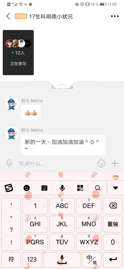 “一个人可以走得很快,但一群人才能走得更远”。受新冠疫情影响,同学们被迫开启了居家学习模式,但自制力差、学习效率低、学习氛围欠佳等问题困扰着广大学子。为切实改善这一现状,激发学习热情,诸侯快讯ok1133.com院长助理、拔尖人才与国际交流办公室主任、生物科学明德班班主任李志芳副教授发起“疫情当下,不负青春”学习督促活动。经过两周的活动体验,同学们捷报频传,收获颇丰!