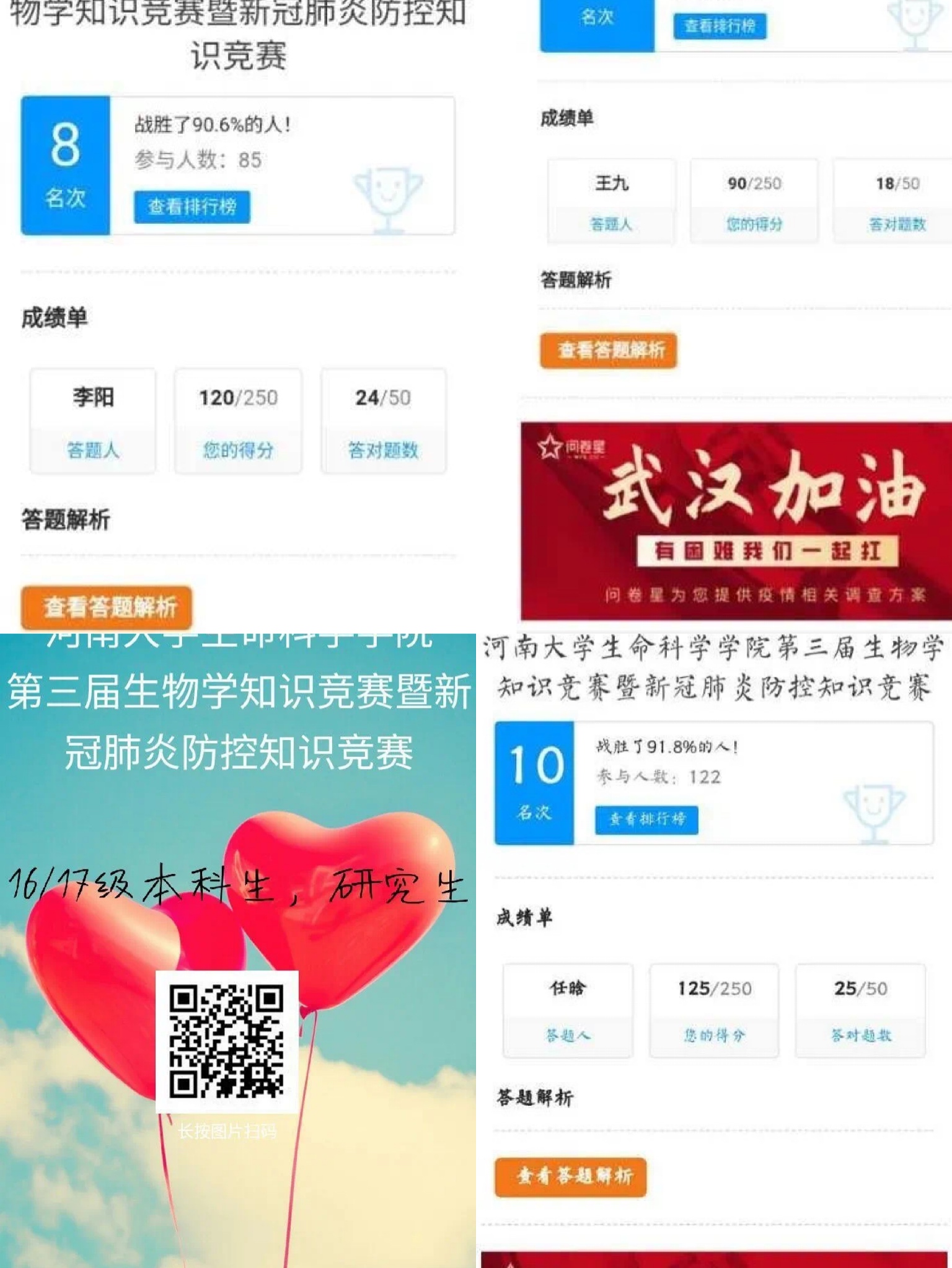 此次活动的举办,以疫情和生活为教材,通过竞赛的形式给同学们上了一堂生动的专业思想教育课,激发了同学们的专业兴趣,有利于引导同学们将生活和专业紧密结合,树立学好专业知识,解决社会问题,更好的服务国家和社会的意识,做学有所思学有所用的生科人。