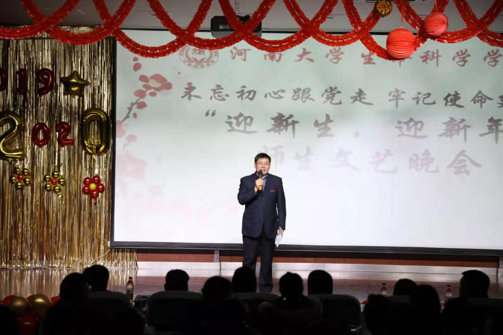 赵东保为晚会致开幕辞。他从国家级科研平台建设、人才队伍建设、学科建设、拔尖创新人才培养等几个方面总结了过去一年学院取得的成绩,向全体教师的辛勤奉献表示感谢,希望每位老师和同学都能积极主动的融入到生物学一流学科建设中,找准自己的定位,不忘初心,自觉践行“脚踏实地,仰望星空”的生科精神,以奋斗者的姿态,抢抓机遇、团结拼搏,主动树一流、积极争一流、努力创一流,为实现学院一流学科建设的目标做出更大的贡献。