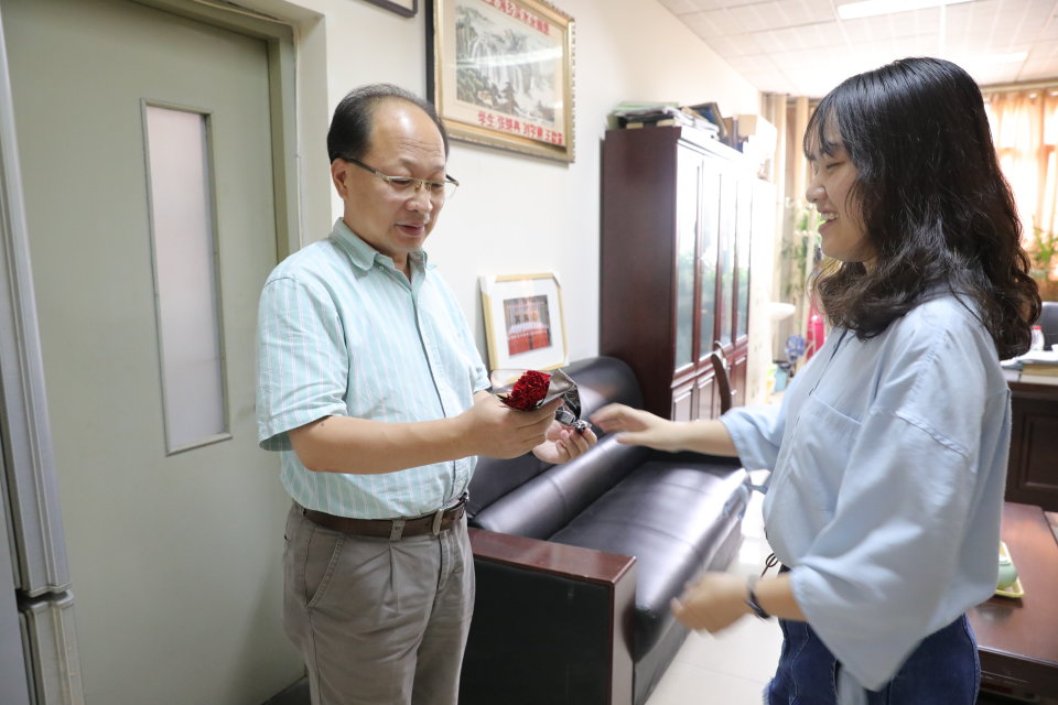 同学们手捧鲜花,彬彬有礼,他们代表全院学生,为我们可爱可敬的老师,送上最真挚的祝福,一声声“老师,祝您节日快乐!”、“老师,我们爱您”!表达了对老师的真情和感谢,感恩老师的爱心,感恩老师的劳动,感恩老师的教诲,一枝枝鲜花,一声声祝福,一份份真情,沁人心脾,感人肺腑,收到学生的祝福后,老师们露出了欣慰的笑容,纷纷嘱托同学们:要时刻保持感激之心,时刻保持上进心,努力发展自身才干,不负父母老师的期望,争取早日成才。