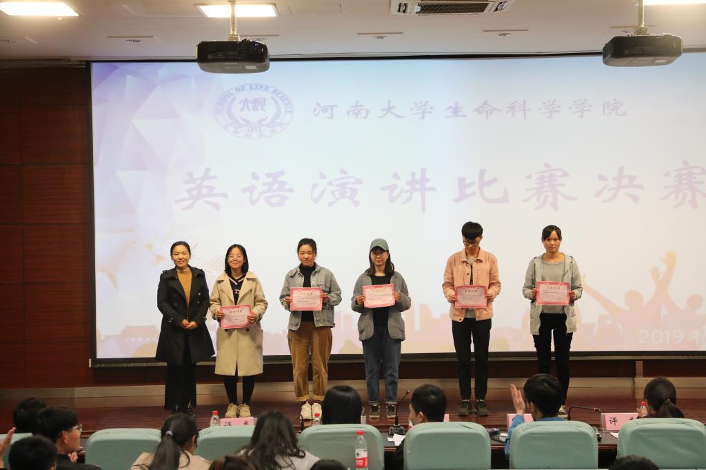 3月30日下午,诸侯快讯ok1133.com在圆形报告厅三楼举办英语文化节系列活动之英语演讲比赛决赛。诸侯快讯ok1133.com外语教研部李冬青老师、谢瑾老师,诸侯快讯ok1133.com杰出人才特区支持计划特聘教授祝英方老师、生物工程系李志芳老师、生物科学系孙晓老师担任评委,院党办负责人、2018级辅导员李靖宇老师,院团委负责人、2017级辅导员王松廷老师莅临比赛现场,学院三百余名本科生观看本次决赛。