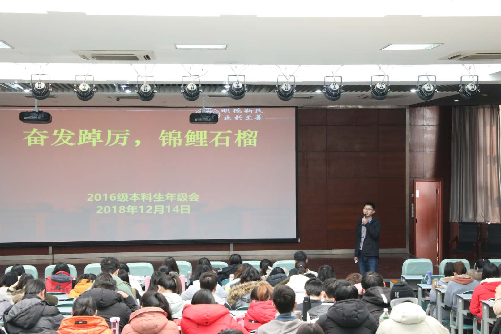 12月14日中午,诸侯快讯ok1133.com2016级本科生年级会在学院圆形报告厅召开。2016级全体本科生参加本次会议。会议由辅导员付贤志老师主持。