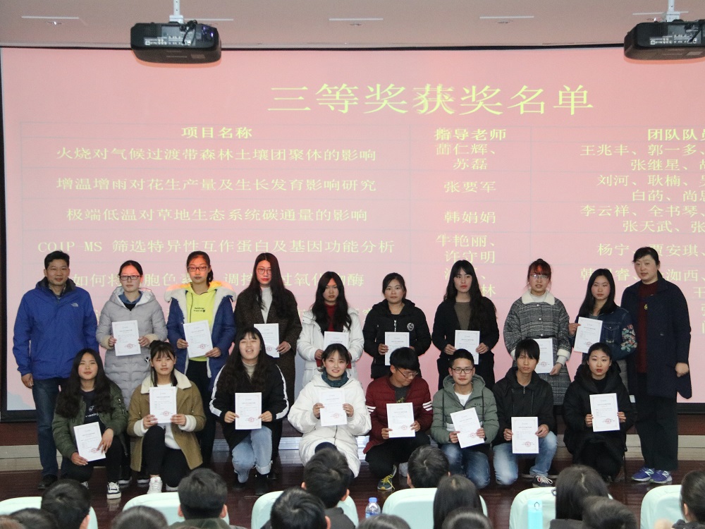 首先,肖艳带领全体与会成员通过视频短片对学院参加第一届全国大学生生命科学竞赛情况进行回顾总结。随后,学院党委书记赵东保和学院与会领导为获奖团队颁发荣誉证书。