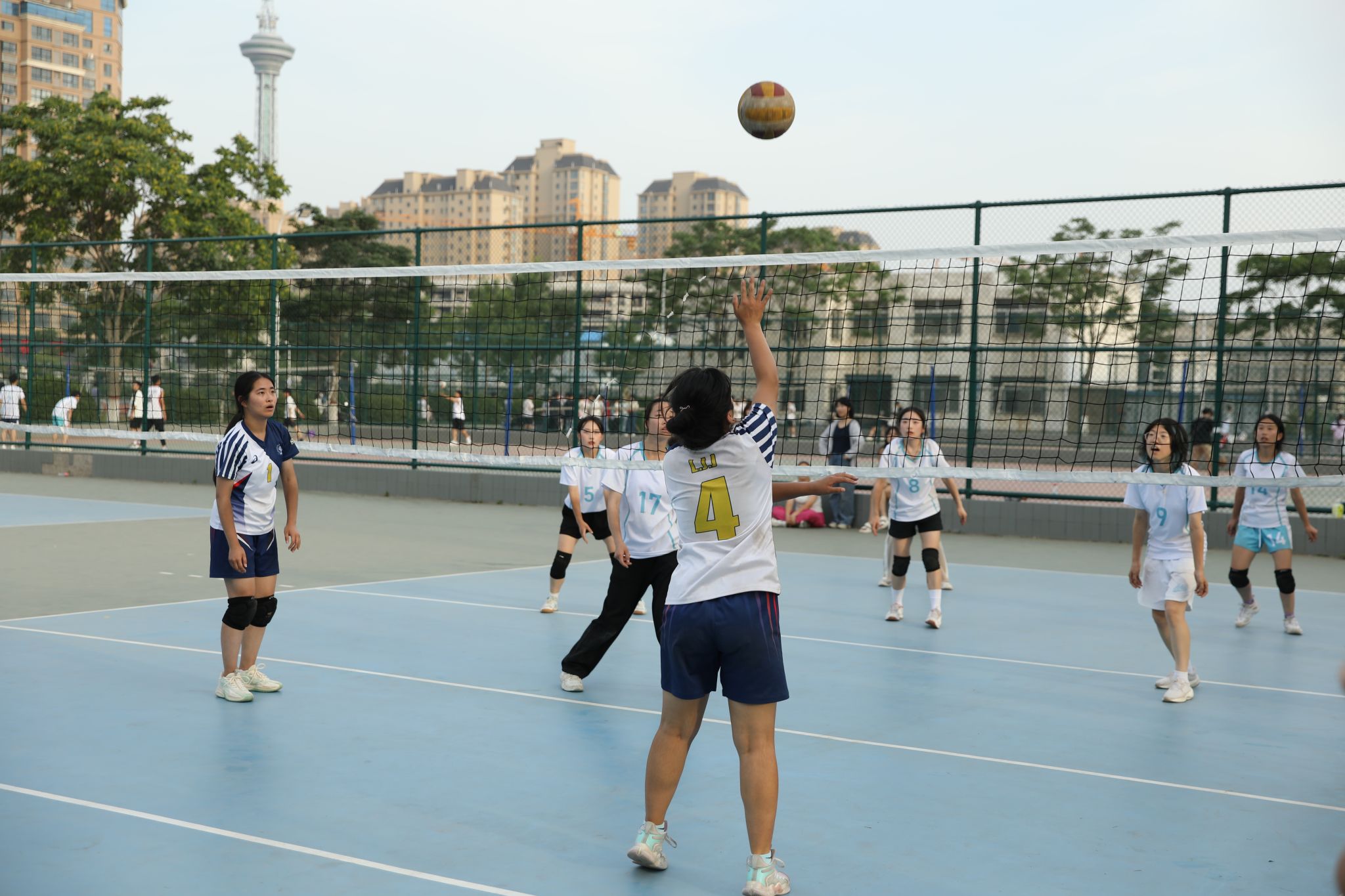 发球、垫球、传球、扣球,一气呵成。队员们相互配合、团结协作,主攻手们如猎豹一般迅猛地跃起,挥臂扣杀,那排球如闪电般飞向对方场地,打出一次次精彩的进攻。在防守端,她们一次次成功地拦下对方的强攻,展现出永不退败的防守意识。队员们湿透了衣衫,但步伐依旧坚定,面对强大的对手,她们相互鼓励,相互支持,汗水在青春的赛场上肆意挥洒,每一个人都在为团队的荣誉而奋力拼搏,尽情释放着青春的活力与激情。。