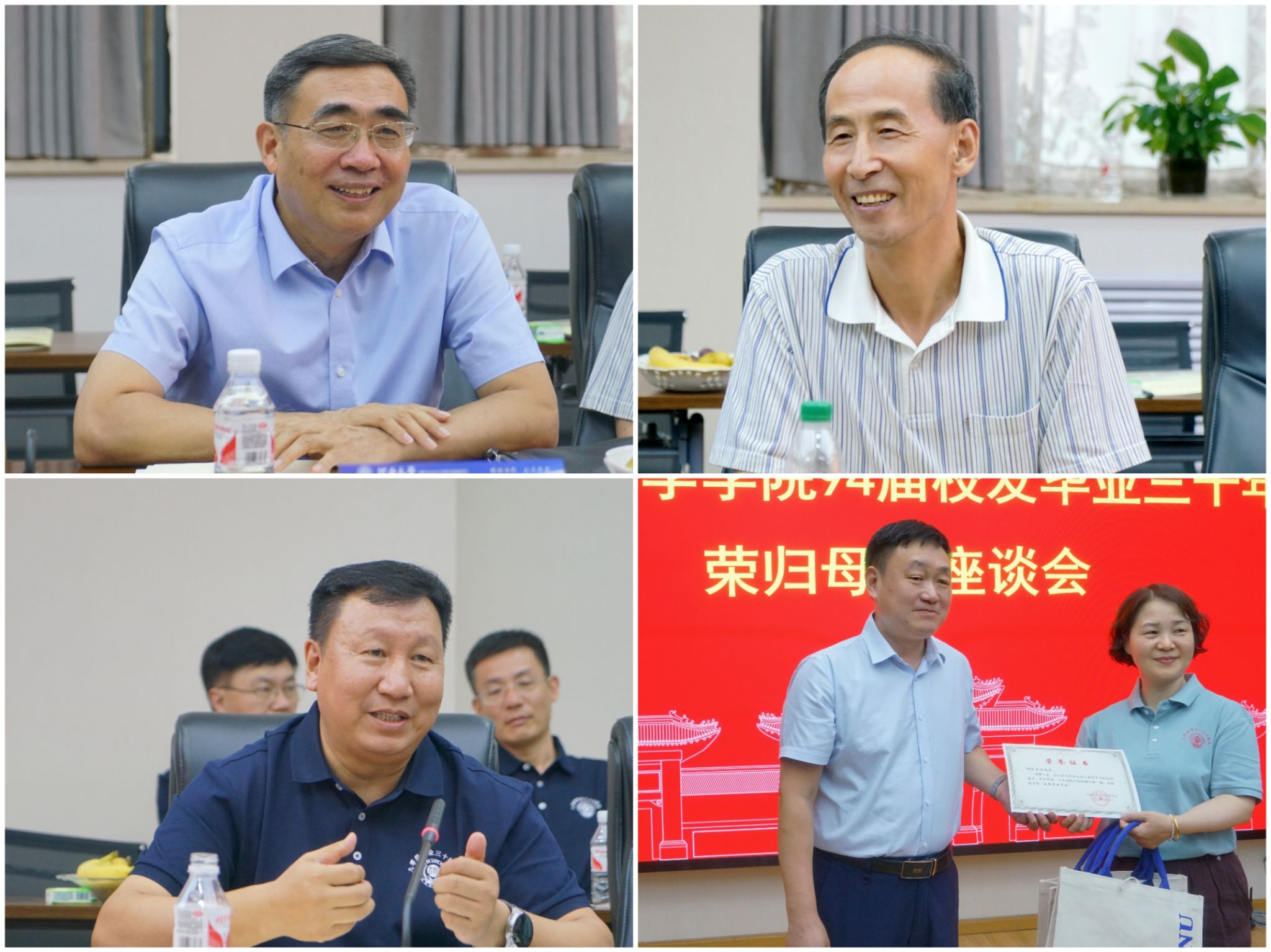 在师生交流环节,宋纯鹏、关学增、苗琛、董发才等教师代表对大家重返母校表示欢迎,重温往日岁月、共叙师生情谊。老师们感慨道,在1987年恢复建院以来,1994届学生作为最早培养的优秀学生群体,在各自的岗位上,扎实工作,奉献了河大力量,打造了河大生科的“金字招牌”。大家心系学院,与母校保持紧密联系,时刻关注支持学科发展,为学院的快速成长和高质量发展做出了突出贡献。看到返校签名墙的名字回忆起当年师生相处的美好时光,四年的“青春美酒”经过三十年的沉淀愈发醇香,“艰苦创业 无私奉献”的生科精神得到了具象。
