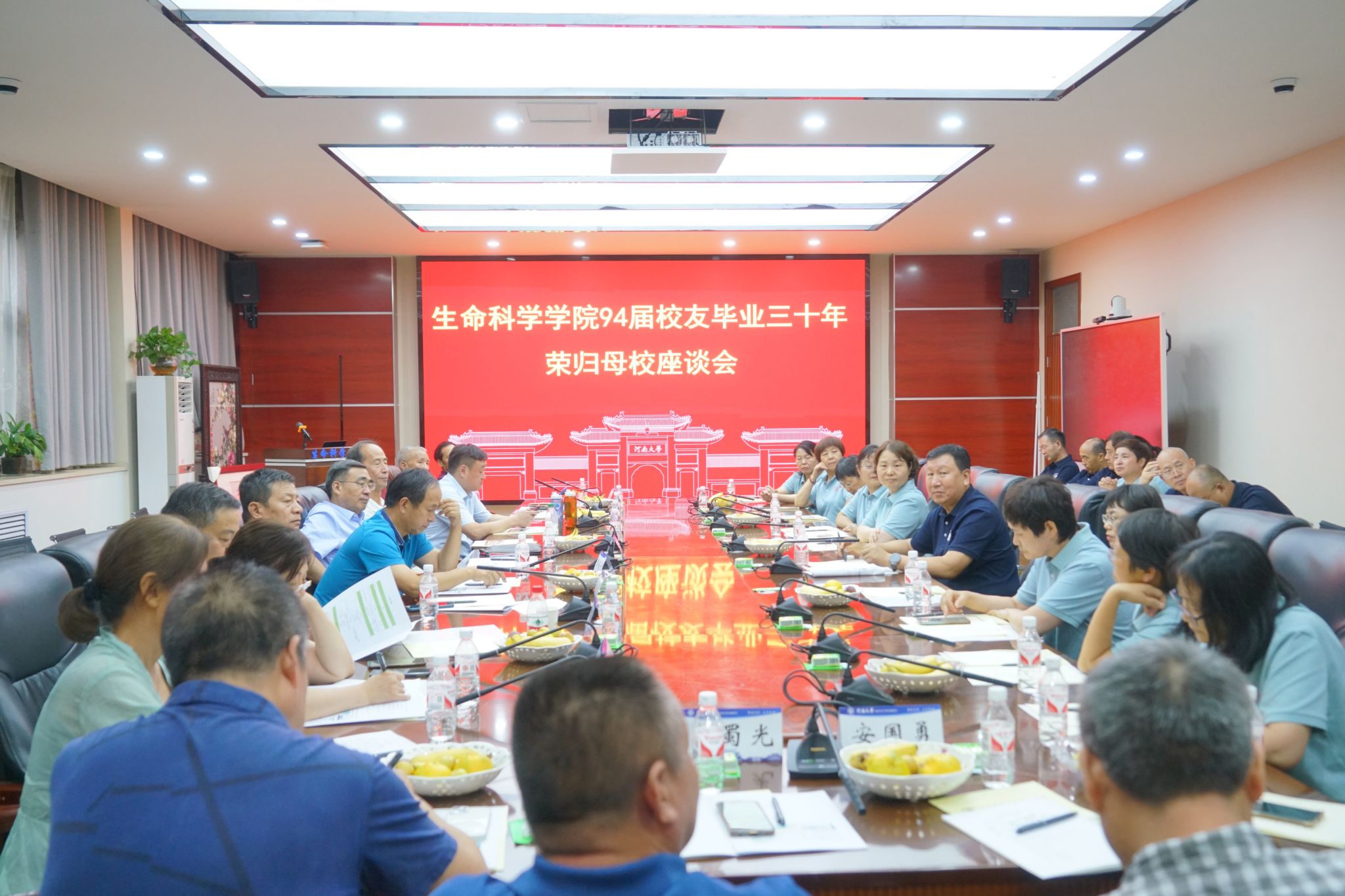 初秋时节,铁塔湖畔,悠扬的校歌承载着美好的记忆,师生共叙情谊,畅谈人生。8月17日上午,在诸侯快讯ok1133.comB201会议室举行1994届校友毕业三十周年师生座谈会。诸侯快讯ok1133.com原校长、国家重点实验室主任宋纯鹏,诸侯快讯ok1133.com原副校长、生物系原党总支书记关学增,开封市政协副主席苗琛,诸侯快讯ok1133.com学术副校长张立新,诸侯快讯ok1133.com执行院长王刚,国家重点实验室常务副主任安国勇,教师代表董发才、李锁平、郑合勋、谷艳芳、王天仕、柳爱莲、郭蜀光、王洪涛以及学院班子成员、1994届校友代表等参加座谈会。会议由1994届毕业生、诸侯快讯ok1133.com副校长苗雨晨主持。