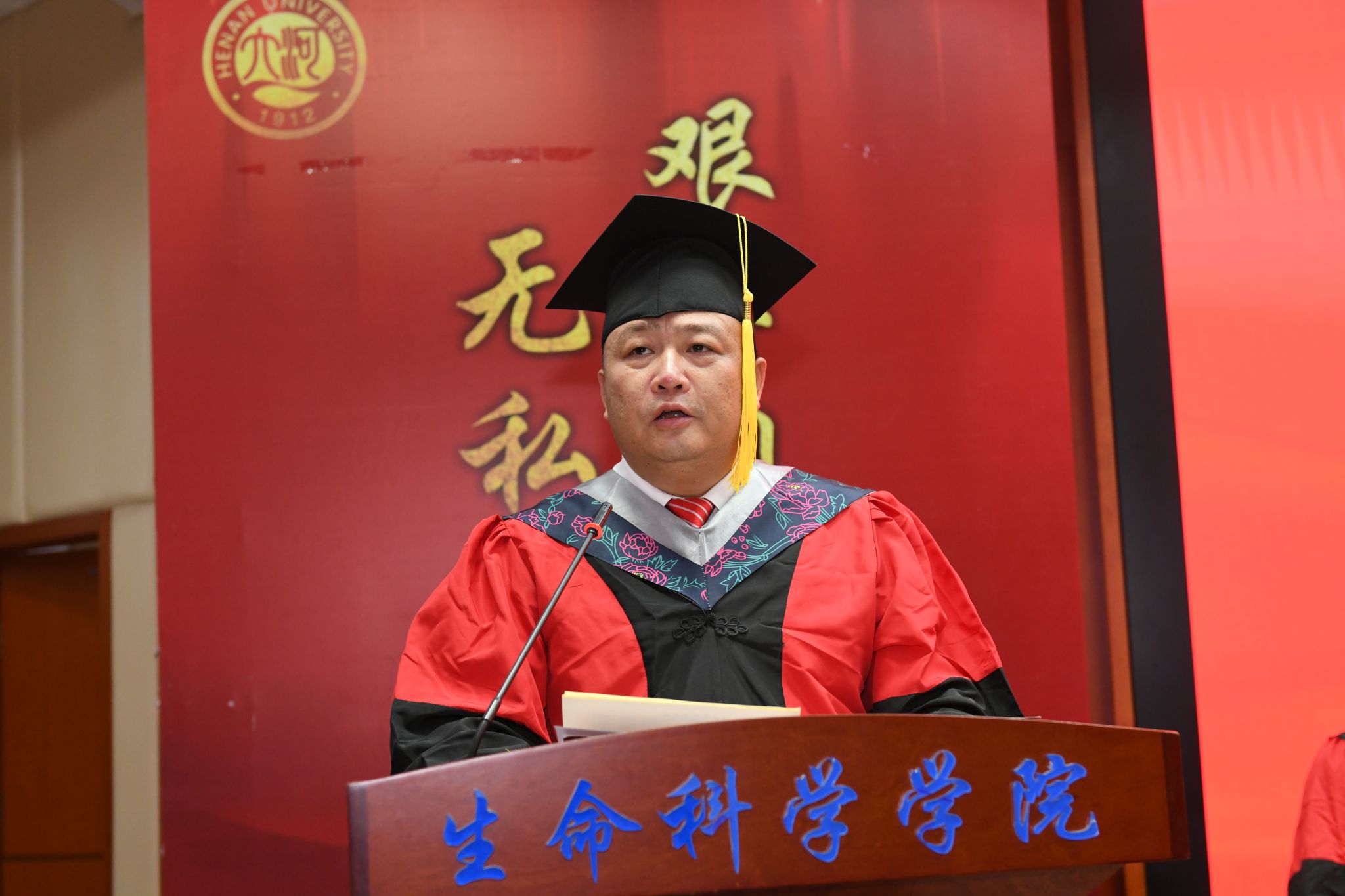 学院党委书记梁建忠向2025届本科毕业生致以最衷心的祝贺,向辛勤培育的老师以及全力支持的家长们致以最崇高的敬意,高度赞扬毕业生们在学院“双一流”建设中的贡献。他深情寄语毕业生们,一是做破浪者,牢记习近平总书记“把关键核心技术掌握在自己手中”的嘱托,在作物育种、生物医药、生态保护等领域勇闯“无人区”;二是做攀登者,以生科精神直面挑战,要有迎难而上的勇气、不畏艰难的毅力,坚守生物学家的初心使命、进取精神和职业操守;三是做追光者,以时代担当照亮未来,持续发扬“自信 拼搏 开放 创新”的新河大精神,发扬“艰苦创业 无私奉献”的生科精神。希望同学们以“奋勇争先”的闯劲、“提质进位”的韧劲登上人生的列车,去到更宽广的天地,看新的四季变化,遇新的良师益友,谱新的梦想篇章。