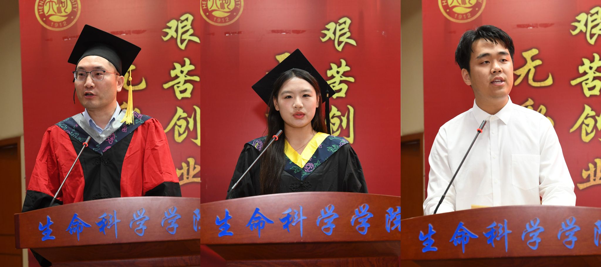 毕业生代表、2021级生物工程专业学生李心雨回顾了大学四年成长足迹中的点点滴滴,感恩学校沃土、恩师教诲以及同窗情谊,并将时刻牢记“学无止境,境如生命”的生科文化,以谦卑之心求知,以自信之姿前行。在校生代表、2023级生物工程专业学生肜宗廷祝福即将毕业的学长学姐们永葆探索的激情与勇气,坚守生科人的责任与担当,前程似锦,鹏程万里!