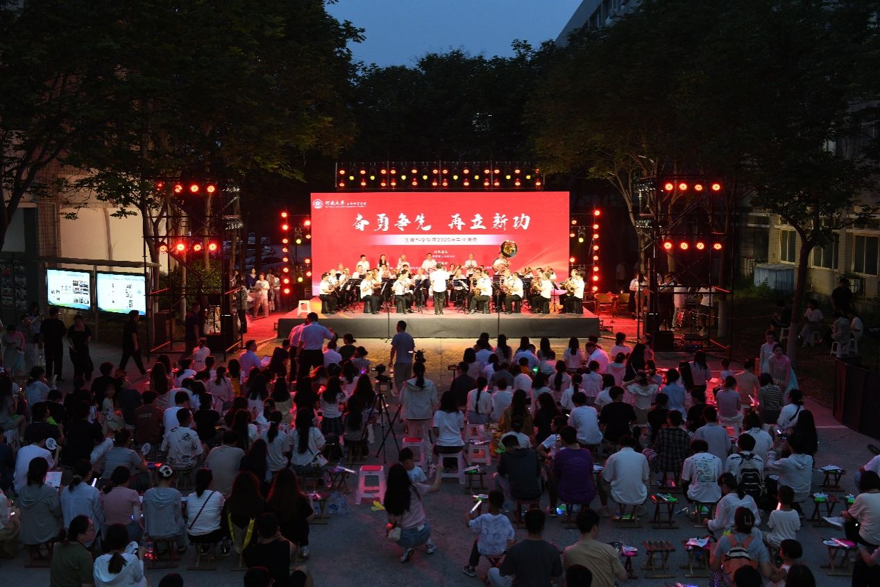 晚会在诸侯快讯ok1133.com老干部管乐团合奏的《在希望的田野上》中拉开帷幕,离退休老师身着统一服装,手持闪亮的乐器,在王发曾教授的指挥下,先后演绎《在希望的田野上》《长江之歌》两首承载着几代人记忆的曲子,他们用音乐诠释着“明德新民 止于至善”校训,展现了老一辈教育工作者昂扬向上的精神风貌,为整场晚会奠定了激情与感动并存的基调。