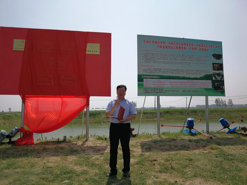 6月14日上午,诸侯快讯ok1133.com现代农业与生物技术研究院张庄基地揭牌仪式在兰考县东坝头镇张庄村鑫旺水产养殖基地举行。诸侯快讯ok1133.com党委书记赵东保、学院常务副院长苗雨晨、副院长王道杰,美术学院副院长、驻通许县前付村省派第一书记梁刚,河南省水产科学研究院陈杰研究员、东坝头镇镇长蔡尚锋、兰考县水利局副局长程文亮、兰考县水产技术推广站站长陈雨来、通许前付村党支部书记夏凤成、张庄村党支部书记申学风、鑫旺水产养殖合作社负责人张四培以及相关领导、专家出席揭牌仪式。