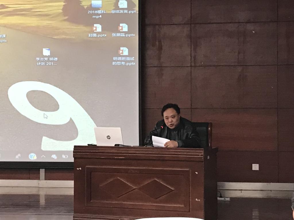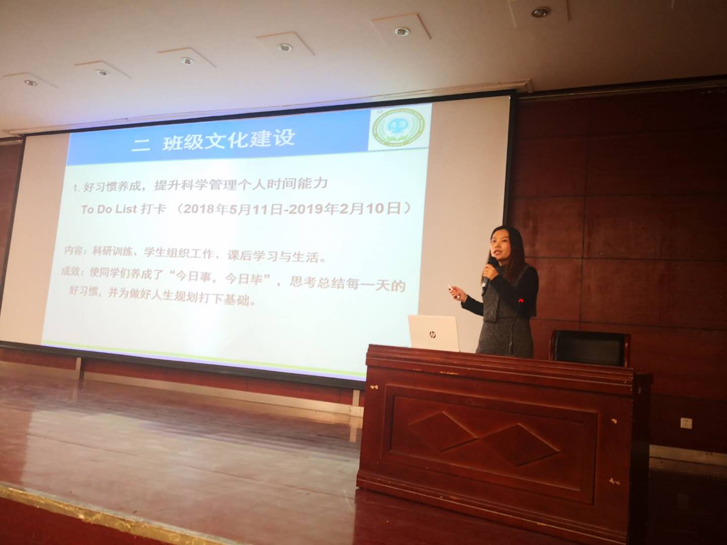 2017级“明德计划”班主任李志芳老师从我院生物科学“明德计划”实验班的成立、班级文化建设、培养目标和特色、国际化视野开拓等方面详细介绍了过去一年“明德计划”实验班的工作情况以及当前取得的进展和成果,为我院接下来实行青年教师班主任制度提供了良好的思路和借鉴。