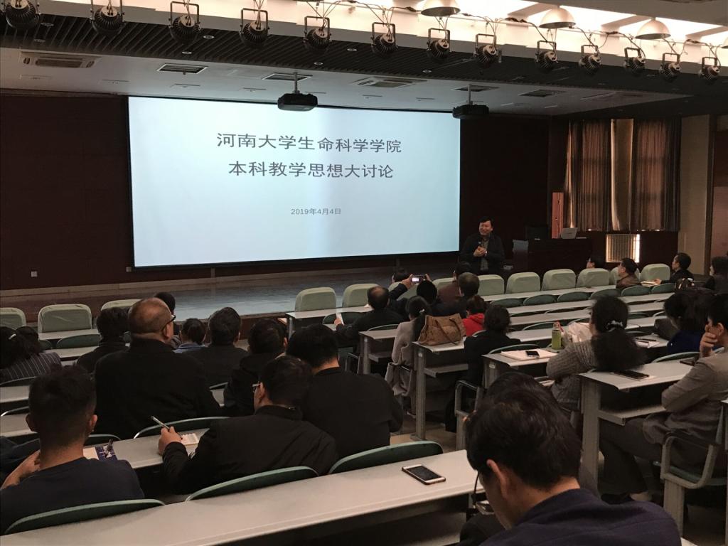 为进一步强化人才培养的核心地位,坚持“以本为本”,推进“四个回归”,推进我校生物学一流学科本科教学建设,2019年4月4日下午,我院在圆形报告厅三楼会议室召开新学期本科教学思想大讨论。学院领导和全体专业教师参加了讨论会,会议由副院长安国勇主持。