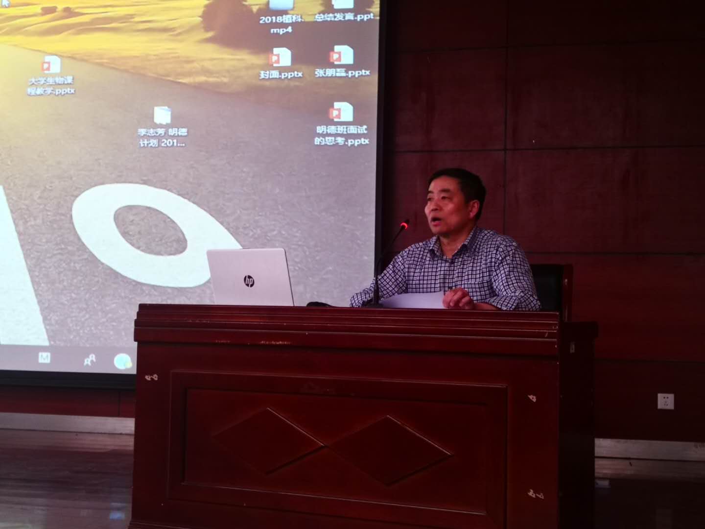 教育部高等学校大学生物学课程教学指导委员会委员谷艳芳教授和教育部植物生产类专业教学指导委员会委员李锁平教授分别传达了相关委员会基本情况和2018-2022年的工作规划。两位委员希望学院能够坚持以本为本,落实四个回归,紧跟新时代高等教育前进步伐,努力推进一流专业、一流课程、一流教师、一流人才等方面的建设工作。
