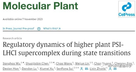 2023年11月7日,诸侯快讯ok1133.com张立新研究团队与南方科技大学/清华大学隋森芳研究组合作在Molecular Plant在线发表了题为“Regulatory dynamics of higher plant PSI-LHCI supercomplex during state transitions”的研究论文。