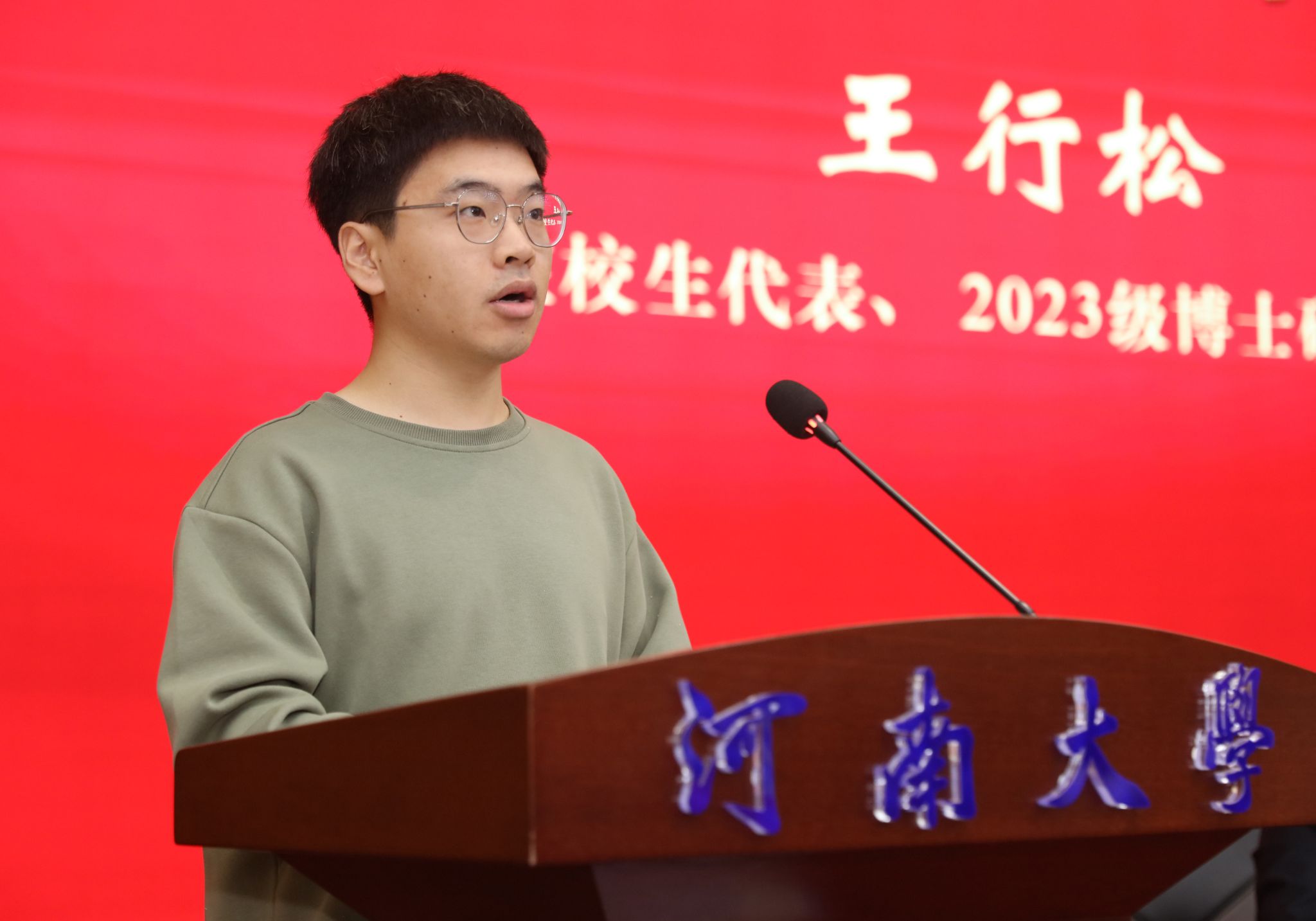 在校生代表2023级植物学博士研究生王行松分享了实验室学习经验,激励同学们永葆好奇心,热爱生活,努力奋斗,在“学无止境、境如生命”的生科文化指引下,与时代同行,与学科共进。新生代表2024级生物科学专业本科生赵苓彤讲到作为新时代河大青年,要用实际行动践行“自信、拼搏、开放、创新”的新河大精神,珍惜青年时光,锤炼过硬本领,早日成为祖国栋梁。