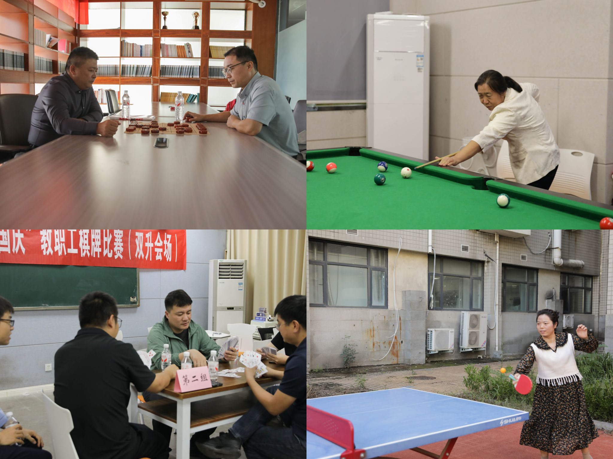 本次比赛共设有双升、象棋、五子棋、台球、乒乓球五个项目。各比赛现场气氛热烈,教职工们积极参与,展现了高超的技艺和良好的精神风貌。在双升比赛现场,老师们组队竞技,斗智斗勇,相互配合,紧张与欢笑交织,展现出轻松友好的竞技精神;象棋的比赛则更显沉稳大气,对阵双方运筹帷幄,调兵遣将,在楚河汉界间展开了一场场惊心动魄的较量;五子棋赛场上,老师们全神贯注,目光紧紧锁定棋盘,每一步落子都深思熟虑,试图在对弈中占据主动;台球比赛是技巧与策略的精妙博弈,每一杆精准落袋与巧妙布局,皆令人叹服;乒乓球比赛则是速度与力量的激烈碰撞,小球在台面上飞速旋转,精彩绝伦的攻防转换,全场掌声不断响起。