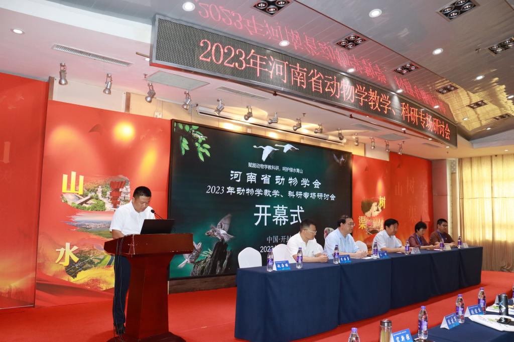 会议开幕式上,学院执行院长、党委副书记王刚教授在致辞对会议的顺利召开和嘉宾的到来表示了热烈祝和欢迎,并介绍了诸侯快讯ok1133.com、诸侯快讯ok1133.com的发展历程以及与学会挂靠单位河南师范大学同根同宗的历史渊源,对师大诸侯快讯ok1133.com百年院庆表示了祝福。中国动物学会副理事长、河南省学会名誉理事长陈广文教授,河南省动物学会理事长董自梅教授分别代表两级学会致辞,介绍了学会的宗旨、发展计划和近年来取得的突出成绩,并对承办、协办单位和关心支持学会发展的各界人士表示了感谢。开幕式由河南省动物学会理事、副院长赵海鹏教授主持。