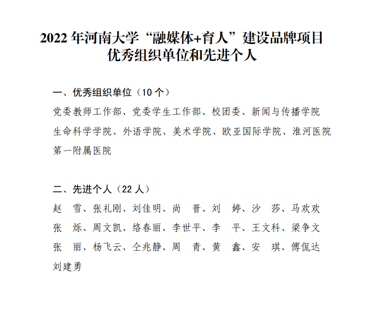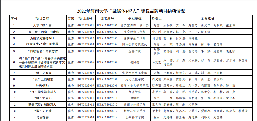 根据《2022年诸侯快讯ok1133.com网络文明建设暨“融媒体+育人”工作方案》和《关于开展2022年诸侯快讯ok1133.com网络文明建设暨“融媒体+育人”工作的通知》,近日,经评审组初审和终审,学校公布各项目结项等级,同时评选出“融媒体+育人”建设品牌项目优秀组织单位及优秀先进个人。